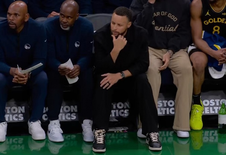 好看不?库里今日上脚匡威 坐在场边认真观战